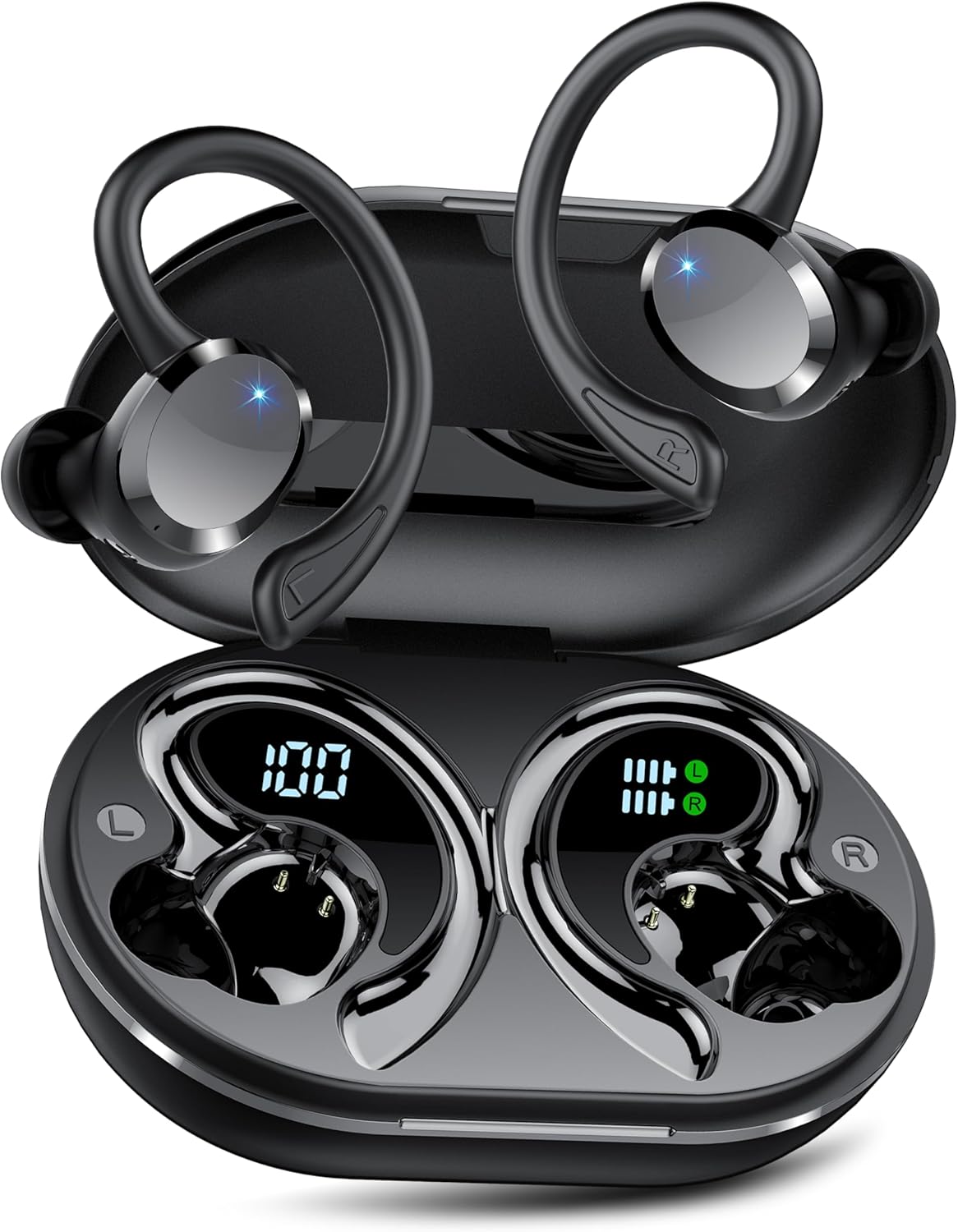 - CHARGE BOX WITH DUAL LED DISPLAY: The wireless ear buds comes with a dual LED display that provides real-time battery level monitoring. You can easily instant power checks at a glance the remaining power and plan your usage accordingly. Whether you're on a road trips for exercise or in a back-to-back meetings, our sporty wireless bluetooth earbuds will meet your needs